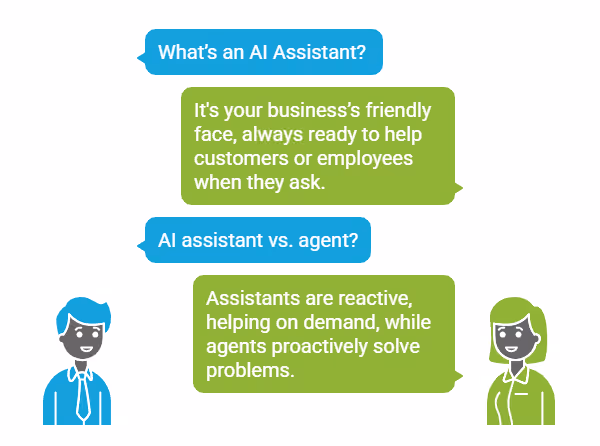 Curious about AI assistant vs. agent? Assistants are reactive, helping on demand, while agents proactively solve problems. Some hybrid agent AI assistants even combine both, more on that later.