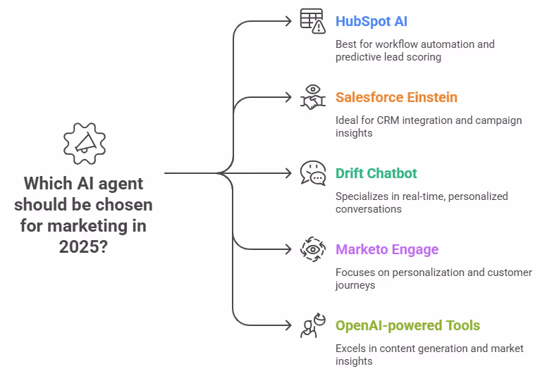 Best AI agents for marketing are AI-powered tools that automate campaign workflows, personalize customer engagement, and analyze data for better decision-making. Popular platforms include HubSpot AI, Salesforce Einstein, Drift, and Marketo. These agents help U.S. marketers save time, optimize campaigns, and increase ROI through real-time insights and predictive analytics.