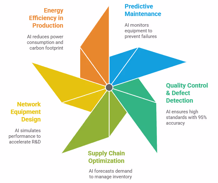 - AI forecasts demand for telecom equipment and optimizes parts inventory.