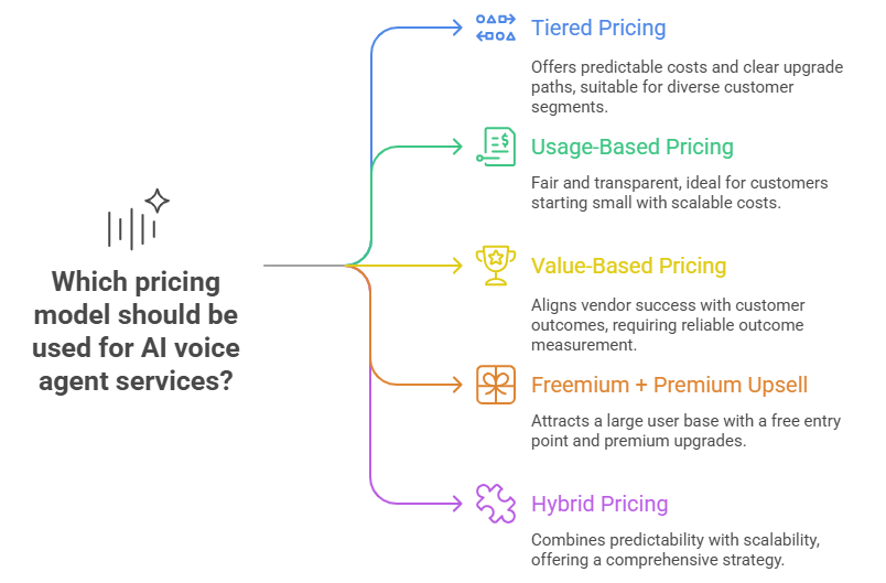 - Structure: The pricing is based on specific metrics. For AI voice agents, this could be: