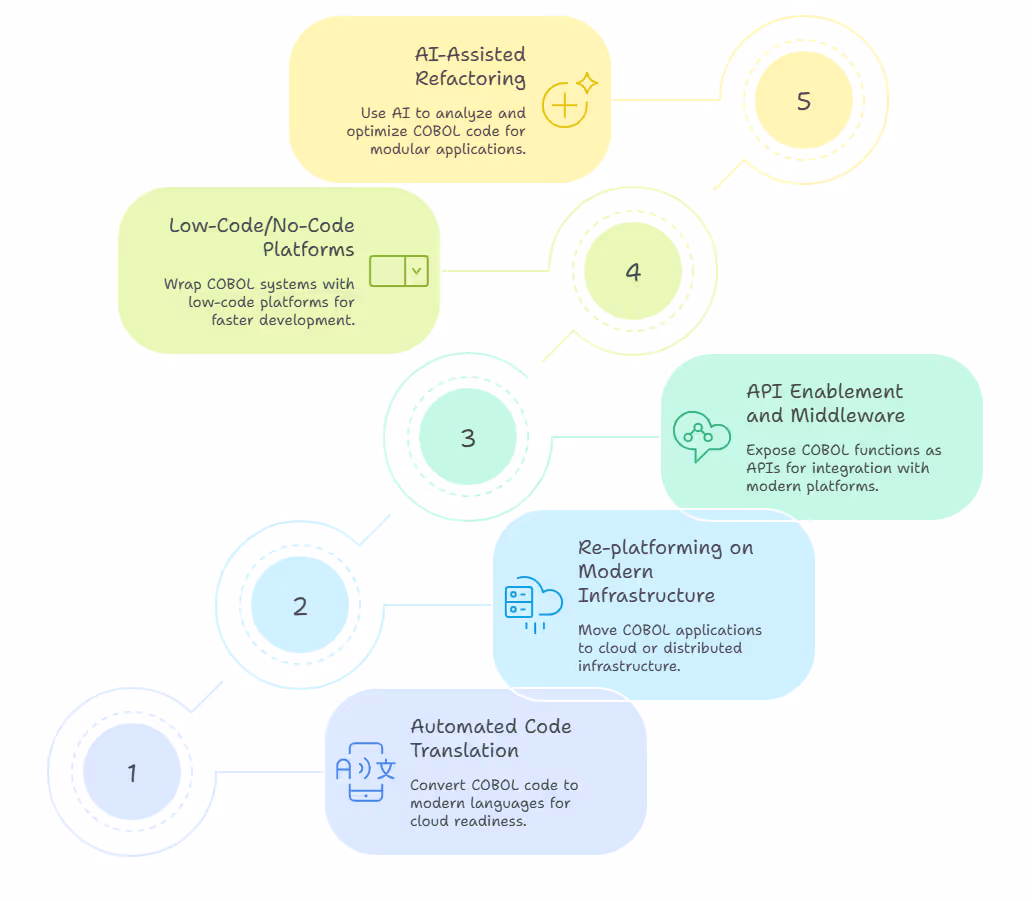 Below are the most common COBOL modernization methods: