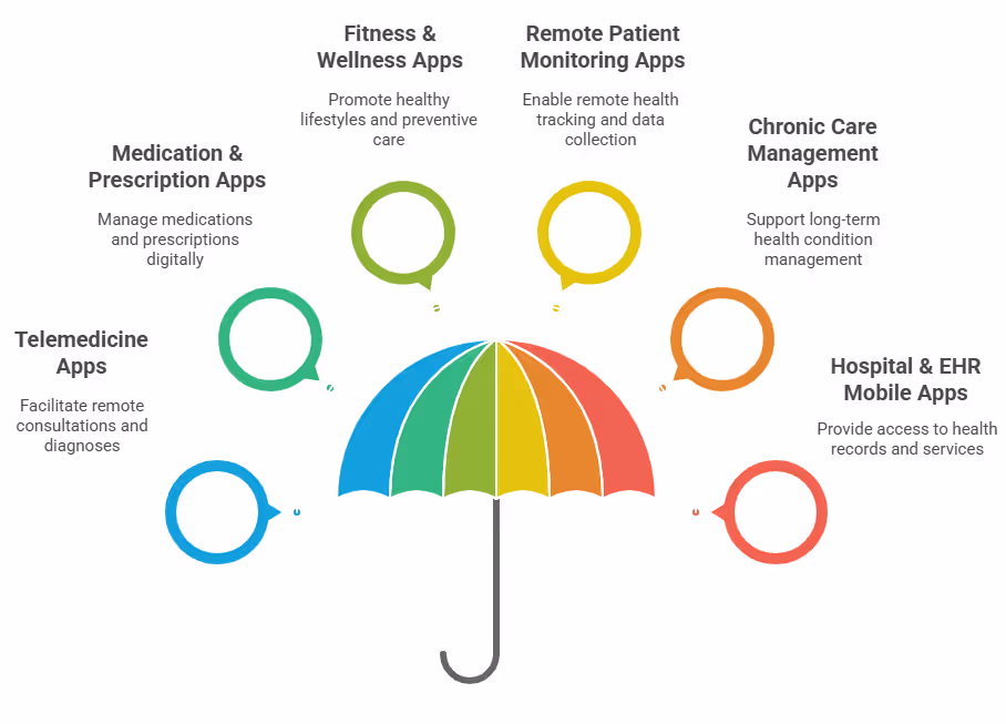 - Fitness and wellness apps focus on healthy lifestyles and preventive care.