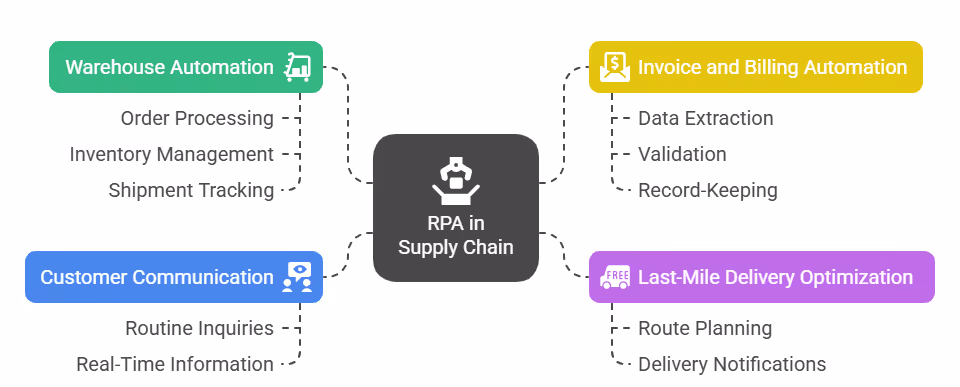 - Automated Communication: RPA can automate sending order confirmations, tracking details, and delivery notifications to customers. This keeps customers informed in real-time without requiring human intervention for each communication.